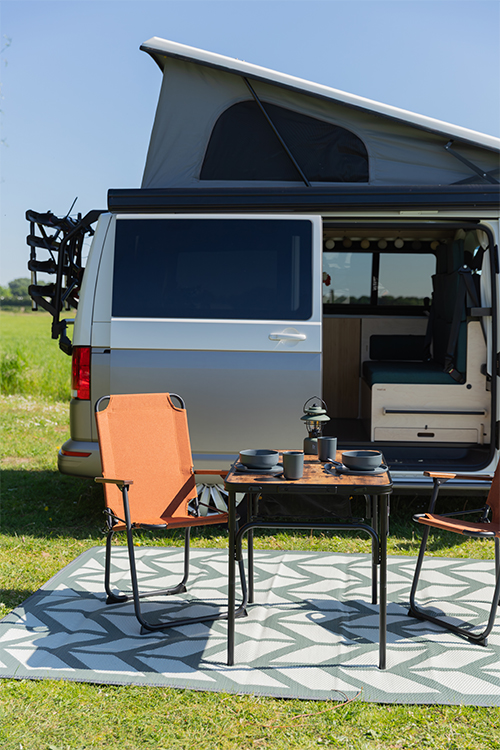 Niet alleen de kampeermeubels, maar ook andere producten zoals de koeltassen en het servies hebben een industriële look. Ga je helemaal voor een trendy kampeerstijl? Combineer dan meerdere producten uit de Industrial collectie. Kies bijvoorbeeld voor het gouden bestek in combinatie met het mat zwarte servies en de industriële kast.